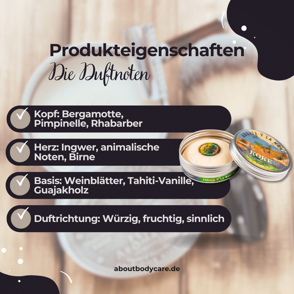 Die feste Textur der Rasierseife Koke erzeugt mit einem angefeuchteten Pinsel im Handumdrehen einen dichten, stabilen Schaum, der die Haut angenehm umhüllt. Durch die fein abgestimmte Formulierung lässt sich der Rasierer mühelos führen, die Seife gleitet, stützt und pflegt in einem Schritt. Der Duft bleibt dezent präsent und verleiht deinem Ritual einen eleganten Rahmen.
