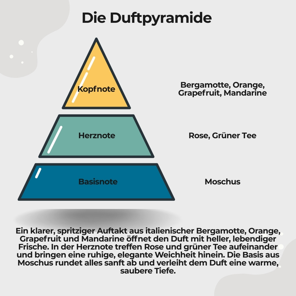 • Zielgruppe: für alle, die klare, frische Tee-Zitrus-Düfte mit moderner, gepflegt wahrgenommener Ausstrahlung mögen.