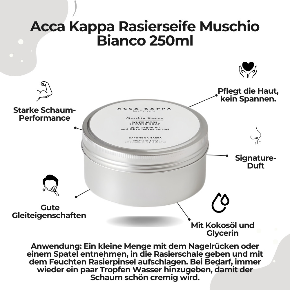 Acca Kappa Rasierseife Muschio Bianco 250ml – Frische und Pflege in Perfektion