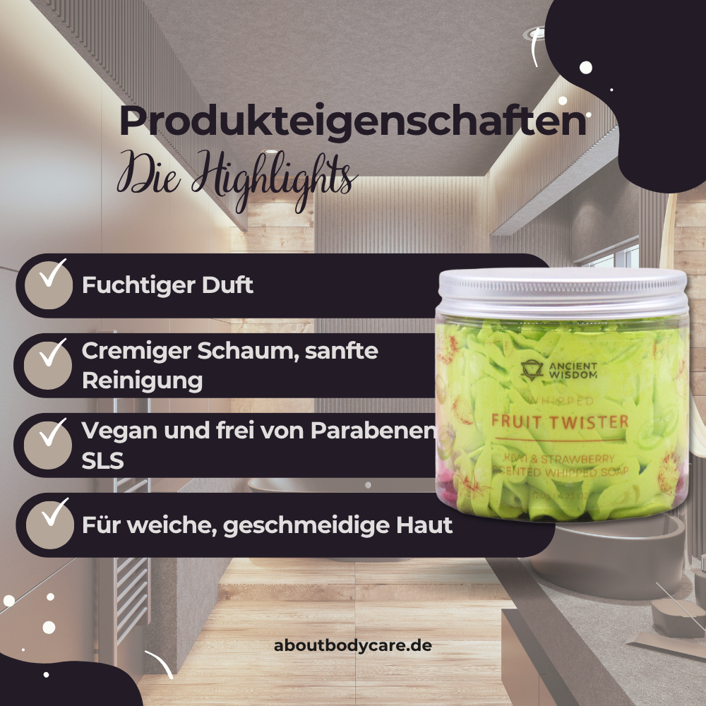 - 1x Ancient Wisdom Schlagseife Fruit Twister 120g