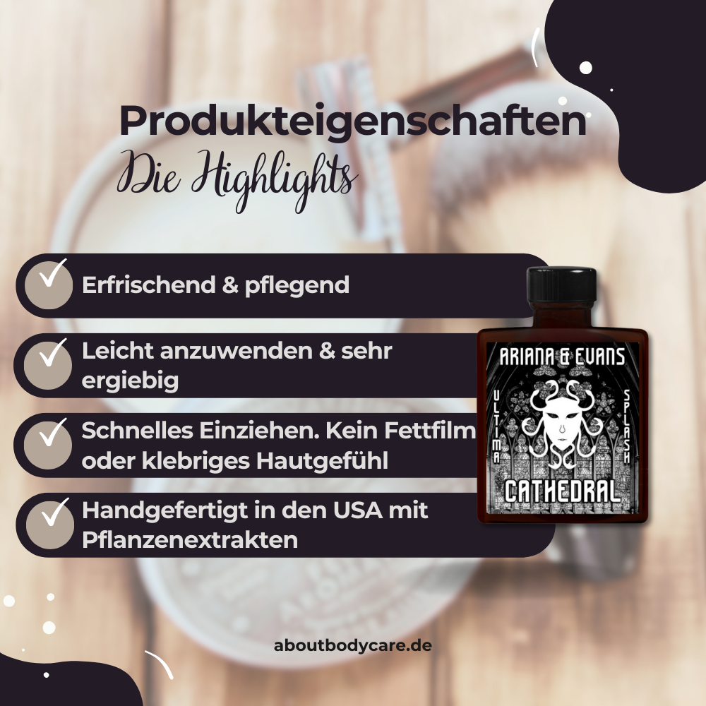 Ariana & Evans Aftershave Cathedral 148ml, Ultima Base – Top Performance für deine Rasur