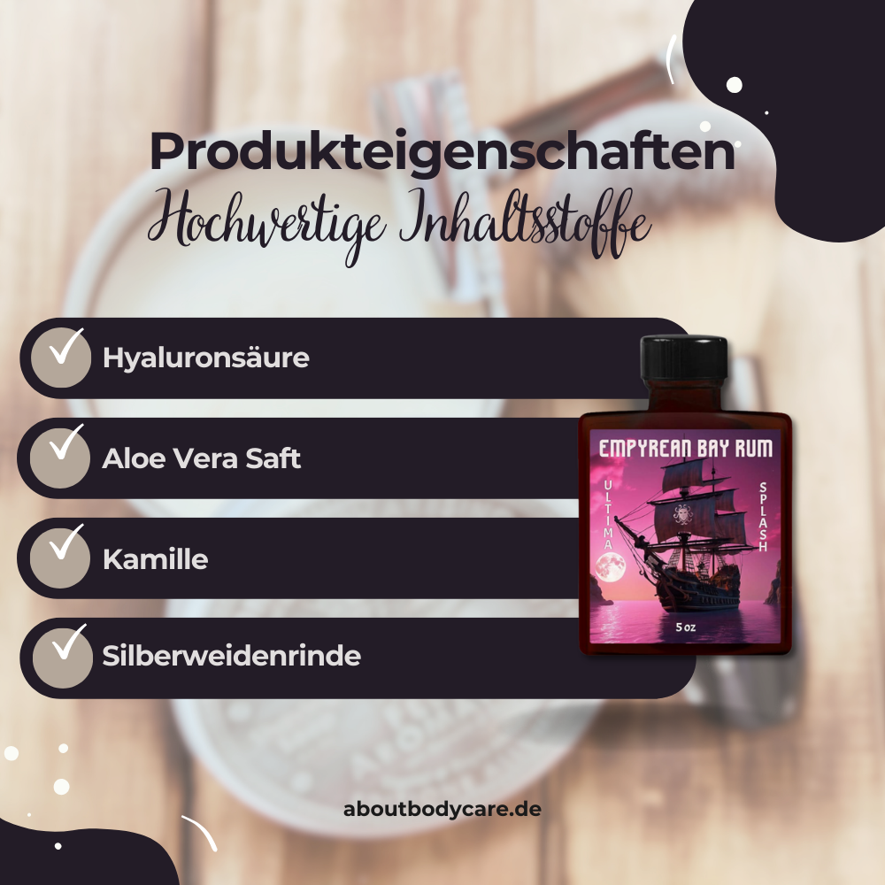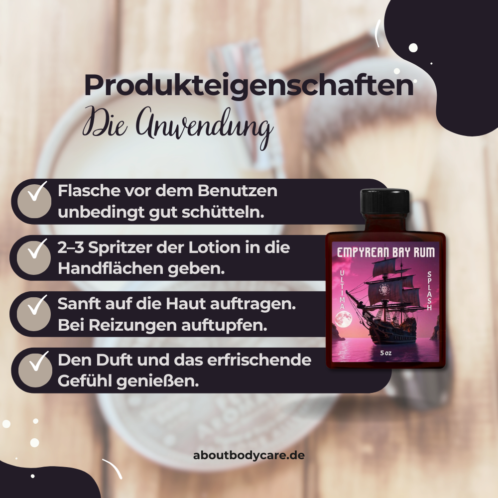 „Anwendung – So rundet das Aftershave Empyrean Bay Rum deine Rasur ab“