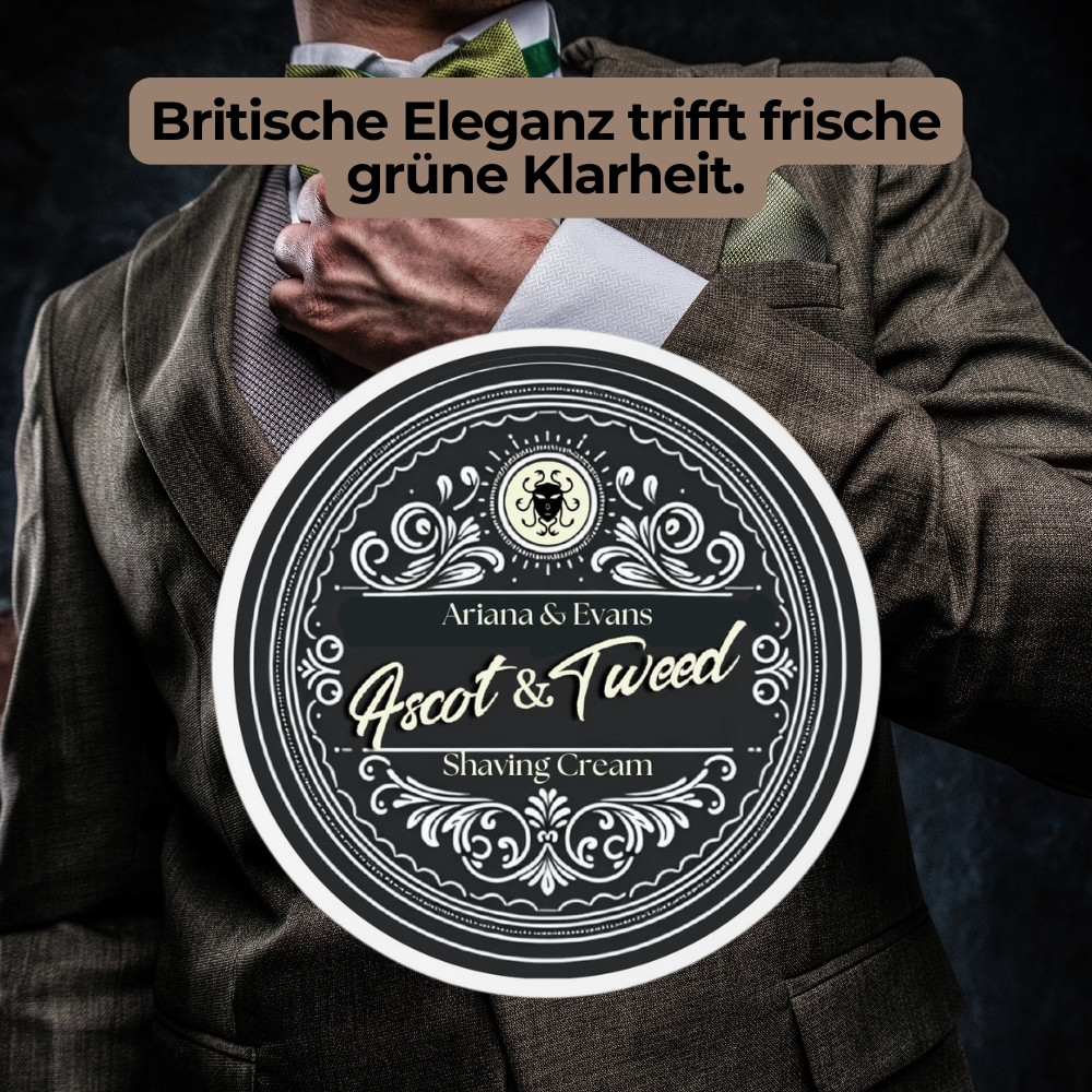 „Die Rasierseife Ascot & Tweed ist für alle, die eine sauber-grüne Eleganz mögen: schneller, dicht-cremiger Schaum, spürbar stabile Gleitschicht und ein gepflegt wirkendes Finish – klar, frisch und stilvoll bis zum letzten Zug.“