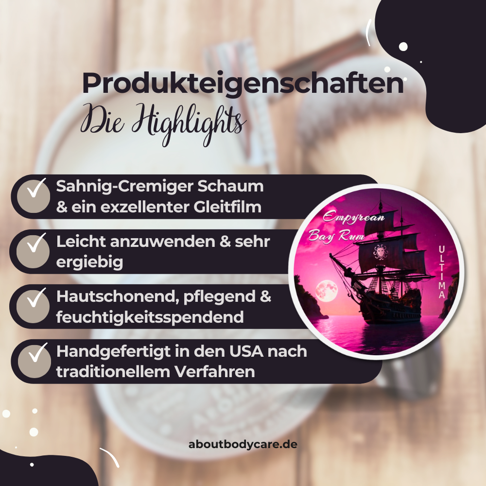 „Rasierseife Empyrean Bay Rum – Der Duft der Seefahrt“