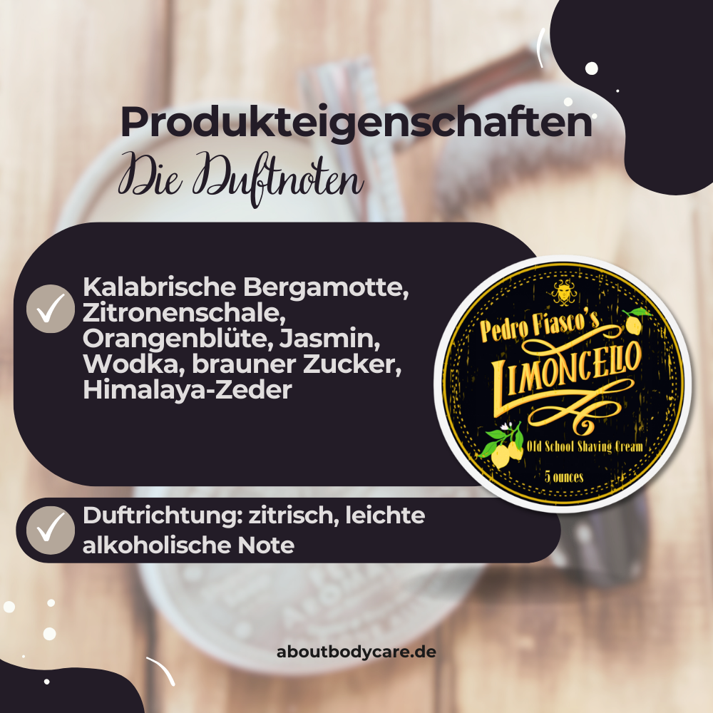 „Duft der Rasierseife Pedro Fiasco’s Limoncello – Zitrone satt auf die Zwölf“