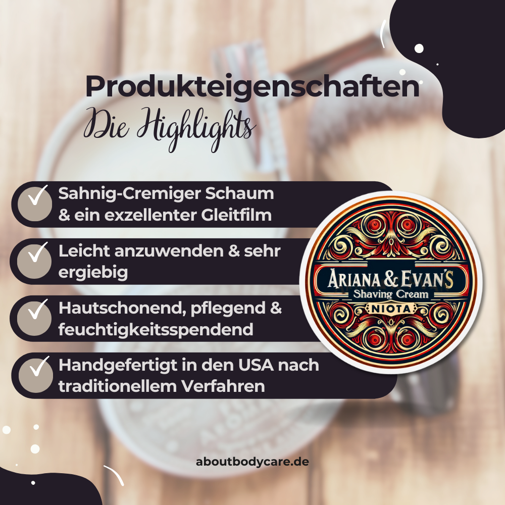 Ariana & Evans Rasierseife Niota 157ml – Top Performance für deine Rasur