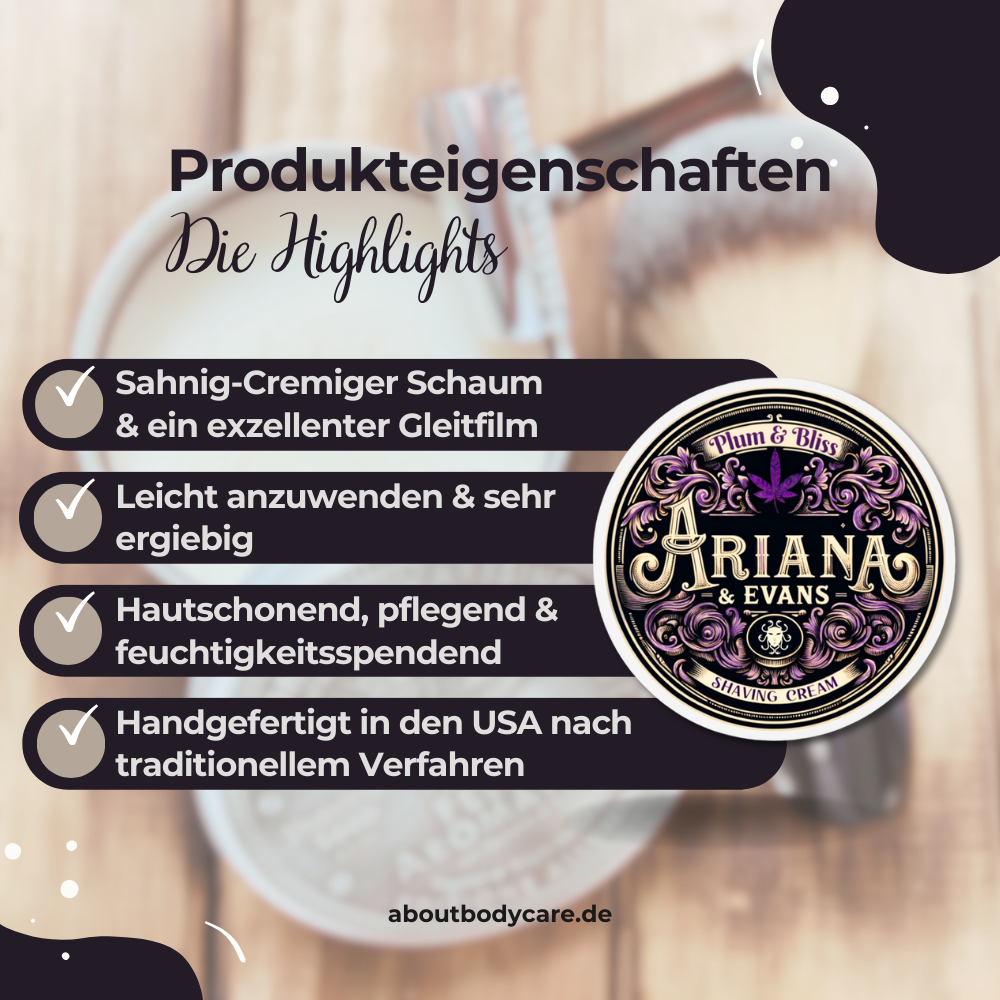✔ Die Pedro-Fiasco-Base der Rasierseife Plum & Bliss sorgt für eine luxuriöse Rasur.