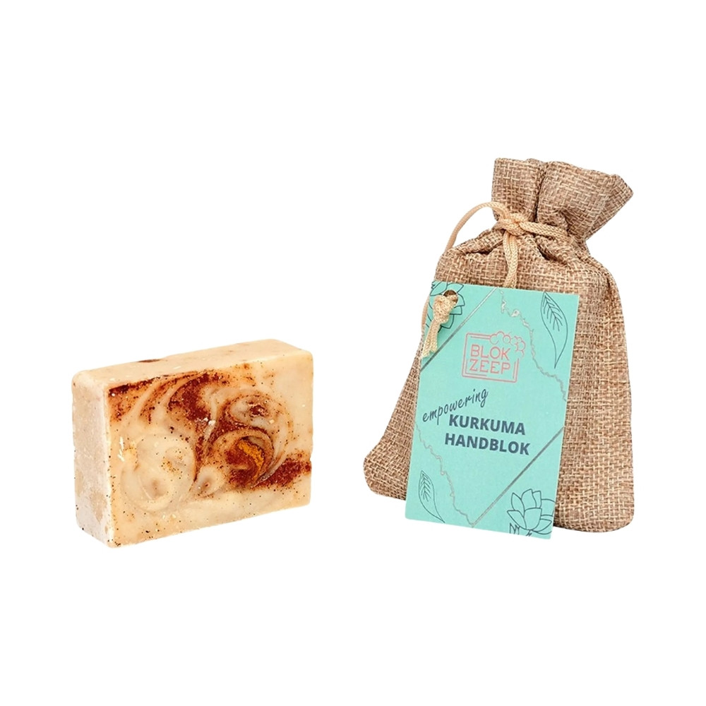 Ganz im Sinne der Blokzeep Philosophie wird auch bei der Verpackung kein neues Plastik verwendet. Das Handblok Kurkuma ist in einem biologisch abbaubaren Jutebeutel verpackt und passt perfekt in eine plastikfreie Badezimmer Routine.