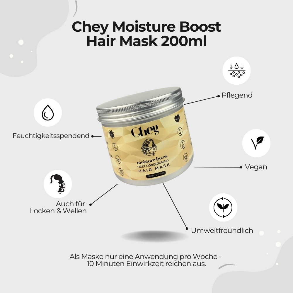 Chey Moisture Boost Hair Mask 200ml, für trockenes & strapaziertes Haar, Leicht beduftet