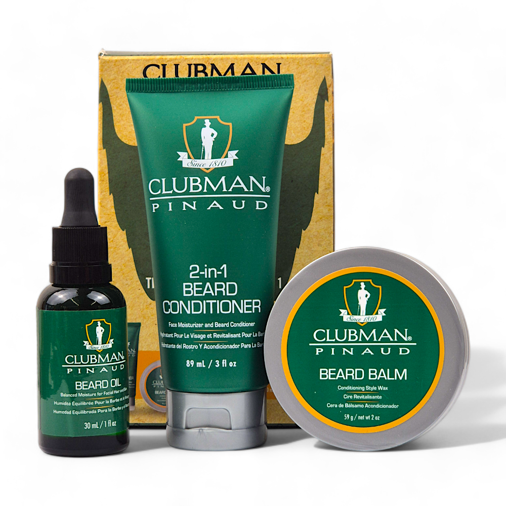 Dieses Bartpflegeset beinhaltet definitiv alles, was zukünftige und bereits bestehende Bartliebhaber für ihre perfekte Bartpflege benötigen. Lass Dein Herz höher schlagen und hol Dir das Clubman Pinaud Beard 3-in-1 Trio Set bestehend aus: