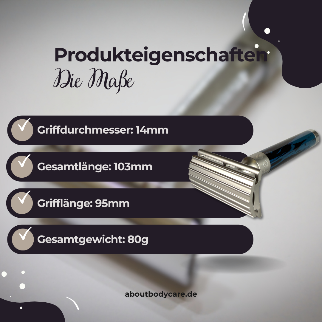 Klingenüberstand -0.05 mm | Klingenspalt ca. 1.1 mm – für alle handelsüblichen Rasierklingen | geschlossener Kamm