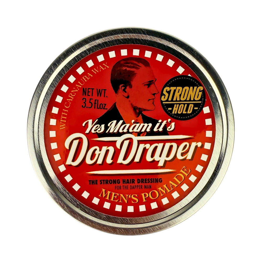 Don Draper Pomade Strong Hold 100ml – Die vegane und ölbasierte Formulierung vereint das Beste der traditionellen Pomaden aus den 1930-1950er Jahren. Ausgestattet mit starkem Halt und Duft nach süßen, sommerlichen Blüten.