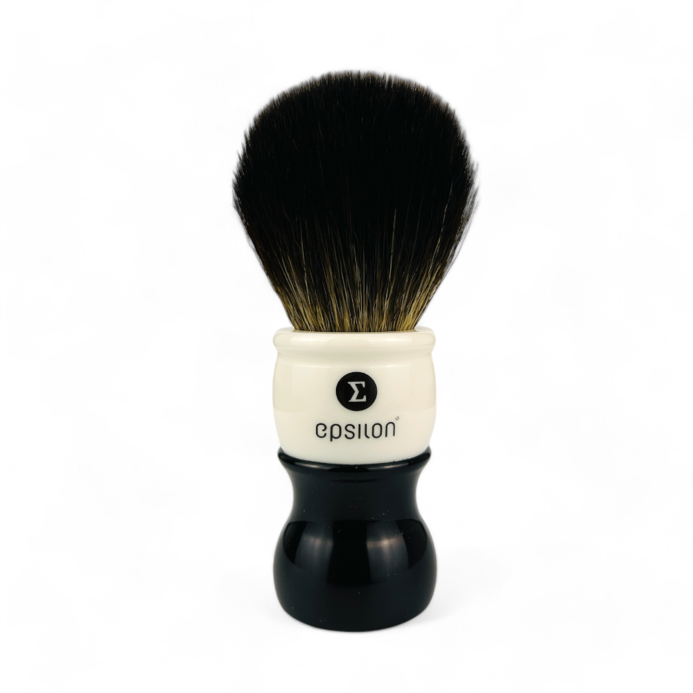 Epsilon Rasierpinsel Black Synthetic Schwarz-Weiß. 52mm Loft und 26mm Knoten. Dem Dachshaar nachempfunden.