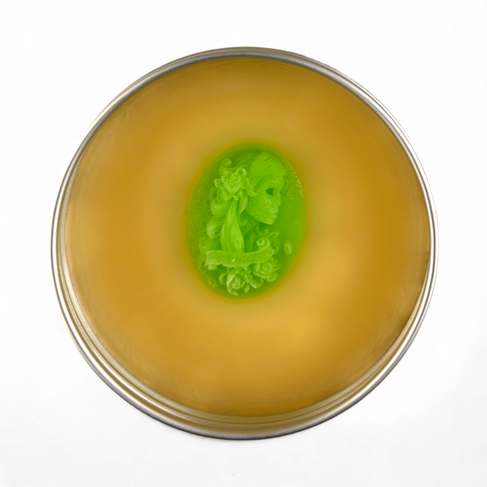 Schon die detailreiche Gestaltung der Dose im Stil des Día de los Muertos ist ein echtes Kunstwerk. Die farbenfrohen Motive mit Schädeln und Rosen erzählen Geschichten und sind ein echter Hingucker. Im Inneren wartet ein weiteres Highlight: Eine Brosche aus Pomade, die wie ein kleines Schmuckstück aussieht und mit ihrem Design an ein süßes Geheimnis erinnert. Diese kreative Präsentation macht die Pomade Fun Fair Scent Medium zu einem unvergleichlichen Erlebnis – noch bevor du sie in deinem Haar verteilst.