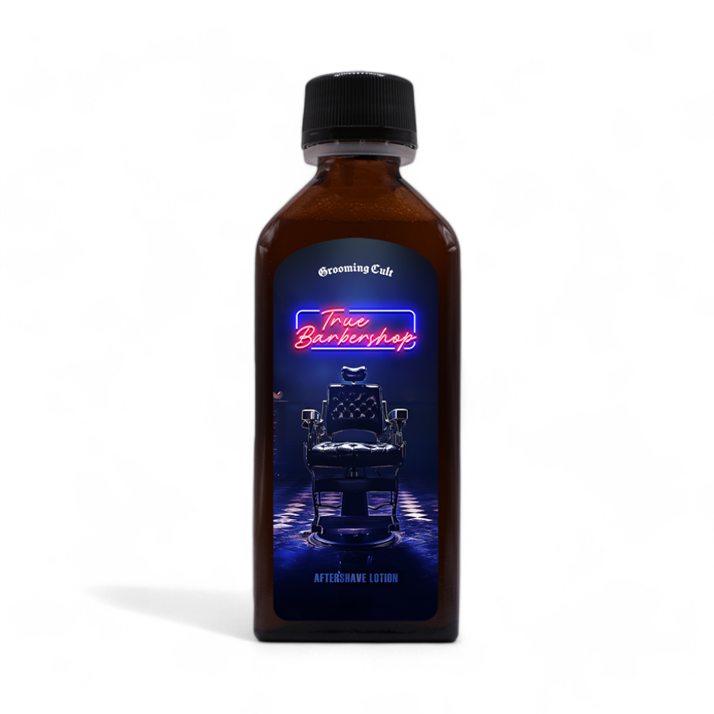 Stell dir vor, du öffnest die Tür eines klassischen Barbershops – das Knarren des Bodens, das sanfte Summen eines Rasiermessers, der unverwechselbare Duft, der sofort Erinnerungen an gepflegte Haar- und Bartpflege weckt. True Barbershop von Grooming Cult fängt genau dieses Erlebnis in einer Flasche ein. Ein Hauch dieser Aftershave Lotion genügt, und du bist mitten in einer Szenerie, die Raffinesse, Pflege und einen Hauch nostalgischer Eleganz verströmt.
