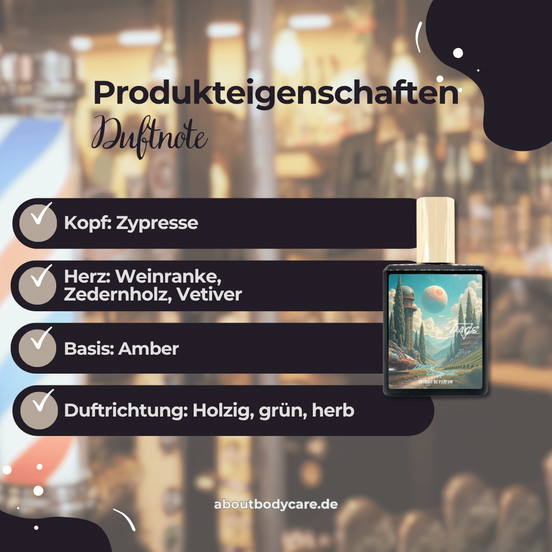 Intensives Extrait de Parfum Orbit Grove mit langem Halt, frischer Zypressenauftakt, grün und holzig im Charakter, mit warmer Amber-Basis. Handgefertigt in Griechenland, ergiebig in der Anwendung, markant im Auftritt. Kein Mainstream, sondern ein individueller Duft mit Tiefgang.