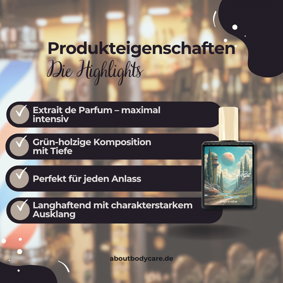 Weil es mehr ist als ein Duft. Es ist ein Ausrufezeichen für Individualität. Extrait de Parfum Orbit Grove ist klar, grün, holzig und kraftvoll – und bleibt dir lange treu. Mit seiner hohen Konzentration, seiner durchdachten Komposition und dem einzigartigen Storytelling hebt er sich deutlich vom Mainstream ab.