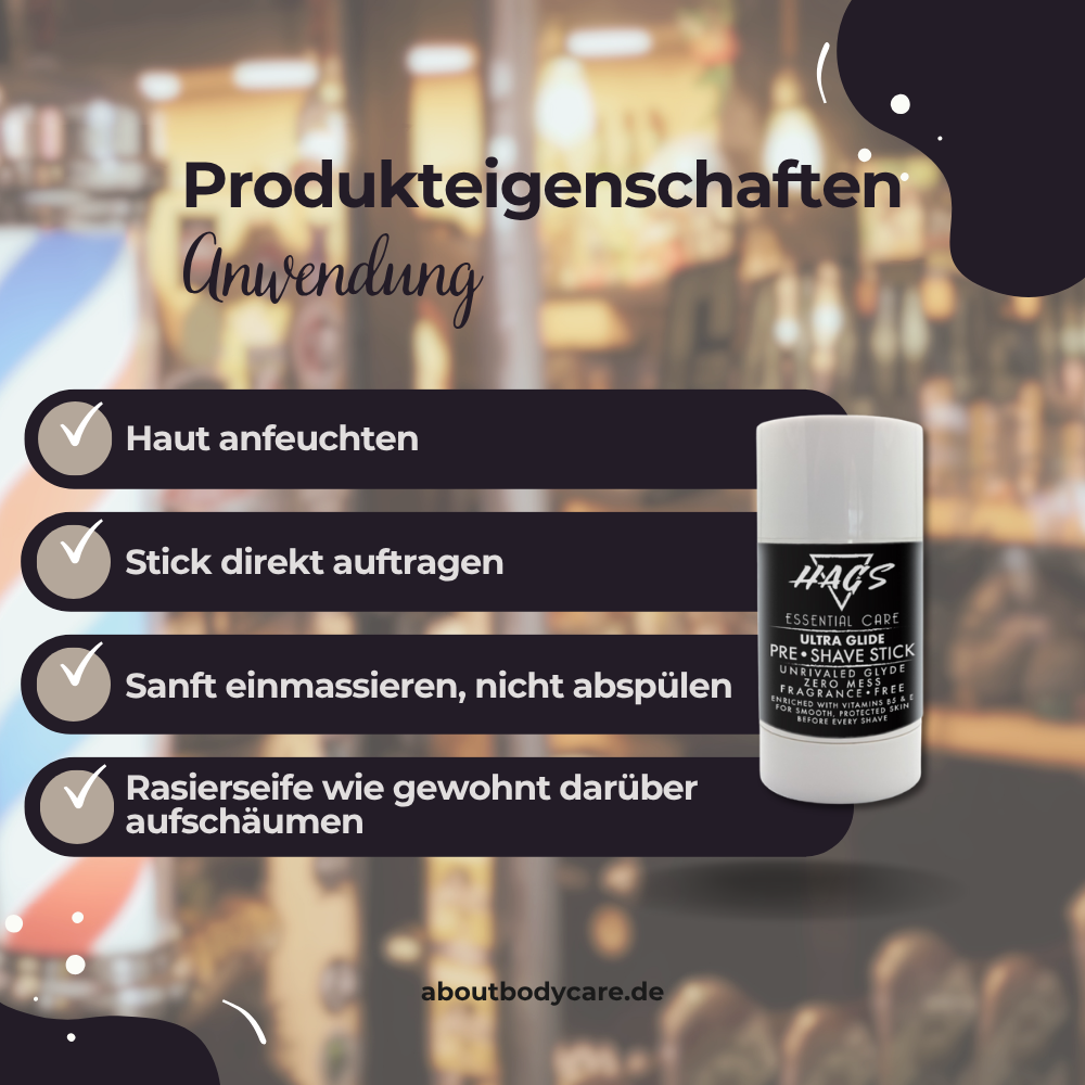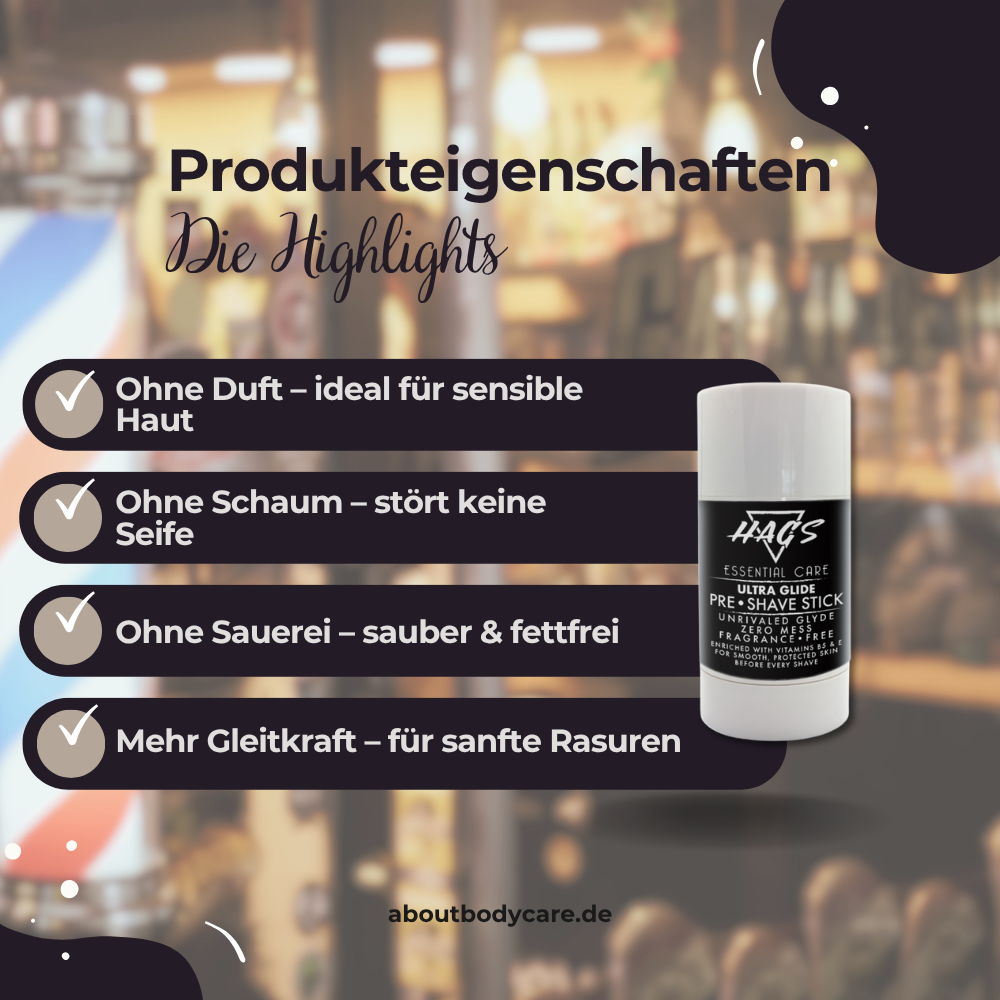 HAGS Ultra Glide Pre-Shave Stick 50g – Die beste Vorbereitung für eine sanfte, präzise Rasur.