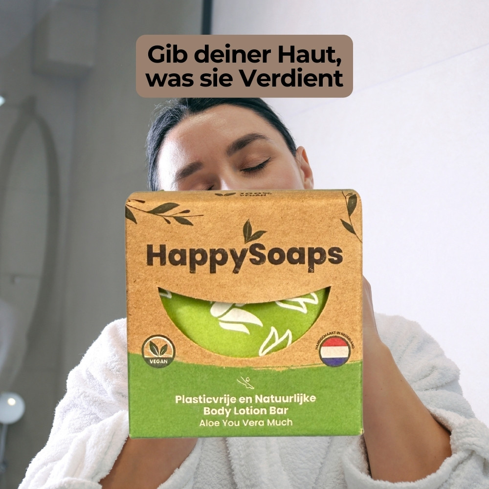 Weil die Body Lotion Aloe You Vera Much eine praktische und nachhaltige Alternative zu herkömmlichen Lotionen in Plastikflaschen ist. Die feste Formel mit pflanzlichen Buttern und Ölen sorgt für ein weiches Hautgefühl und lässt sich mühelos verteilen. Vegan, palmölfrei und komplett plastikfrei verpackt, ist sie nicht nur hautfreundlich, sondern auch ein Gewinn für die Umwelt.