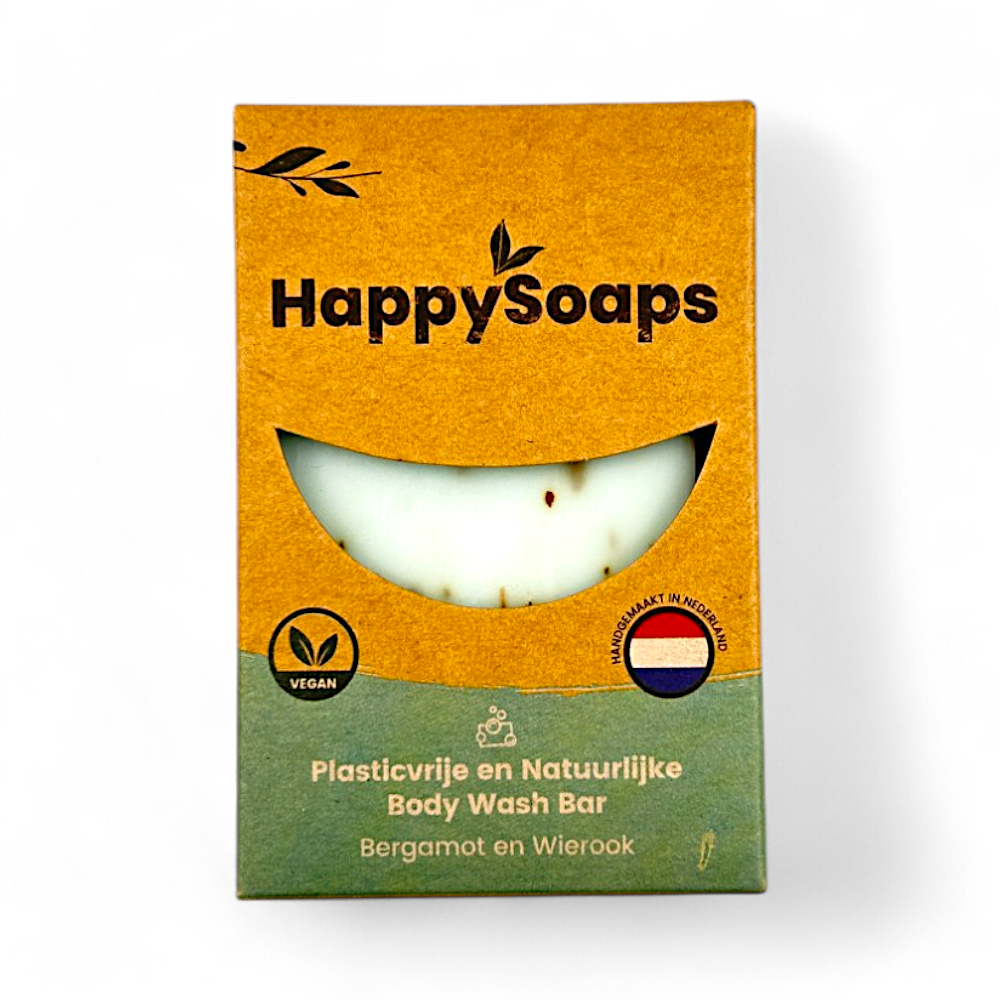 HappySoaps Body Wash Bar Bergamotte und Weihrauch 100g, feste Seife