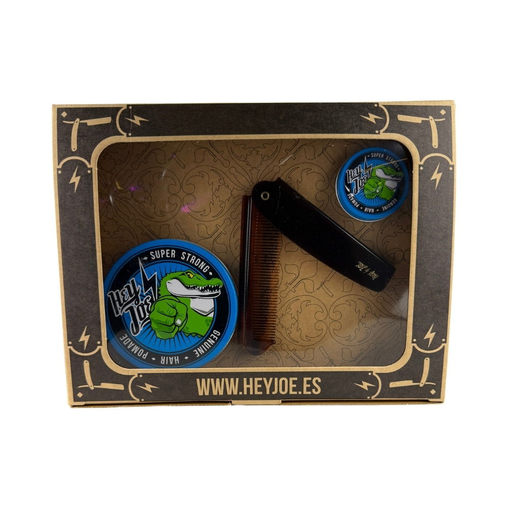 Im Survival Kit findest du alles, was zu einem funktionalen Haar- und Bartpflegeset gehört: zwei Größen der beliebten Genuine Hair Pomade Super Strong und den handgefertigten Deluxe Comb Taschenkamm. Perfekt für zuhause und für unterwegs – praktisch, stilvoll und jederzeit einsatzbereit.