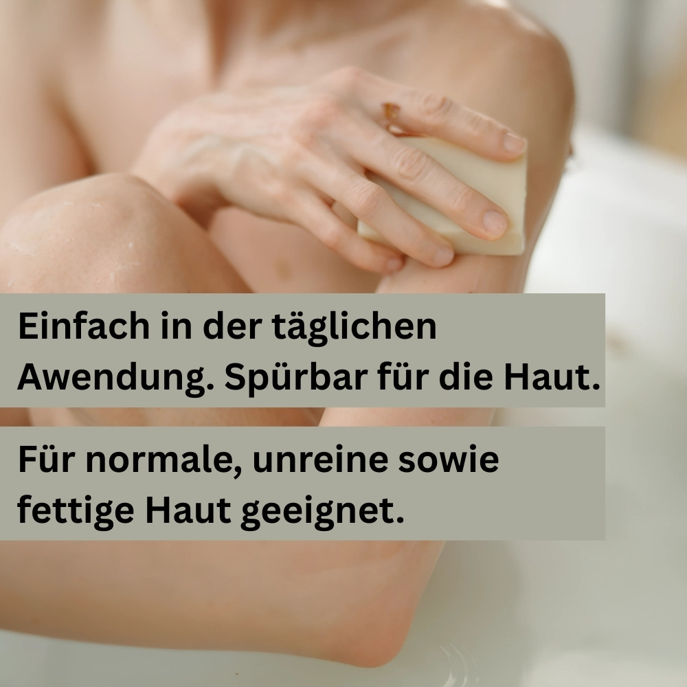 Die Seife eignet sich für alle Hauttypen. Sie reinigt gründlich, ohne die Haut auszutrocknen, und vermittelt ein angenehmes, frisches Hautgefühl.