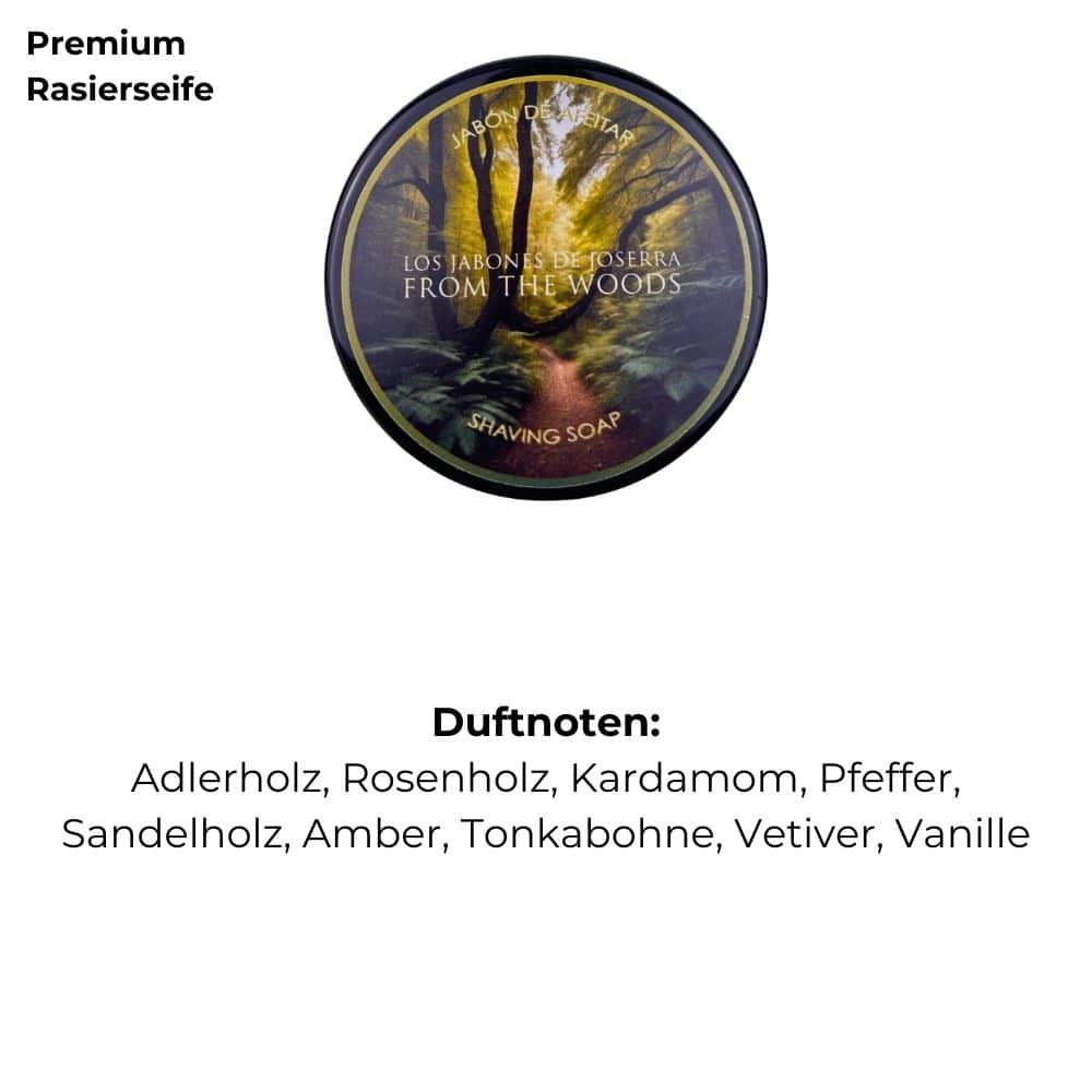 Der Duft der Rasierseife From The Woods ist wie ein Abenteuer für die Sinne. Die würzigen Kopfnoten aus Adlerholz und Kardamom erinnern an das Knistern eines Lagerfeuers, während dich Sandelholz und Amber wie die wärmenden Sonnenstrahlen durch die Baumkronen begleiten. Im Hintergrund sorgen Vetiver, Vanille und Tonkabohne für eine sanfte Süße, die den Duft perfekt abrundet. Es ist, als würdest du tief im Wald stehen – stark, erfrischt und geerdet. Dieser Duft macht deine Rasur zu einem Moment der puren Entspannung und Eleganz.