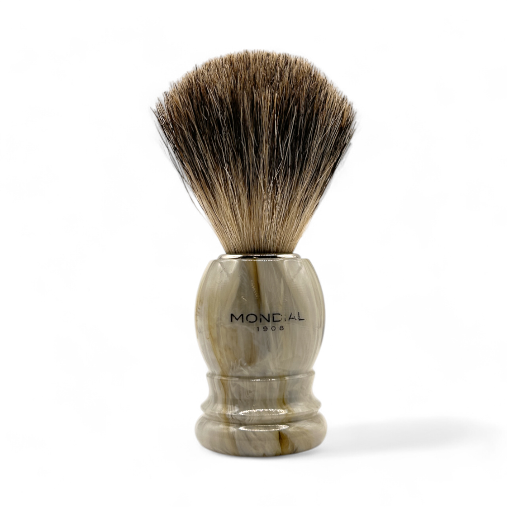 Uso: Inumidire il pennello da barba e usarlo con movimenti circolari sul sapone o sulla crema da barba per creare una schiuma. Applicare la schiuma uniformemente sulla pelle.