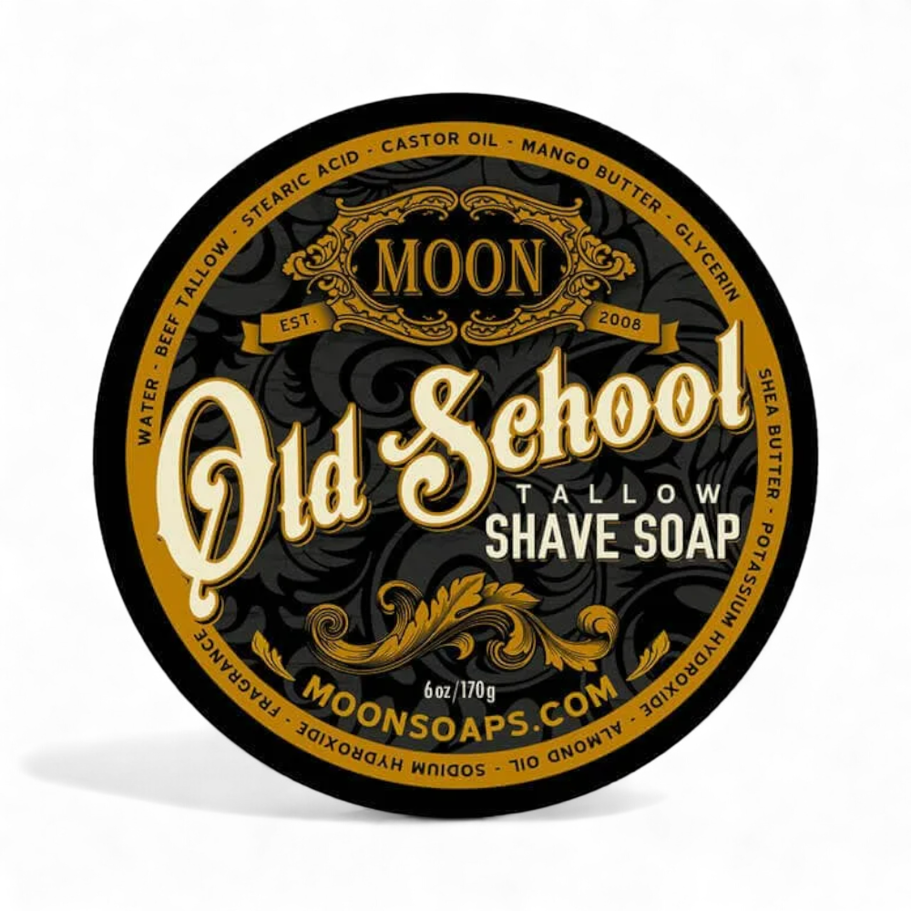 Moon Rasierseife Old School 170g – Tabaknoten spielen auf Vetiver, Leder, Mahagoni und süßer Vanille. Ein männlicher und wirklicher „old school“-Duft. Genau das Richtige für gestandene Nassrasur-Liebhaber. Handgefertigt in den USA.
