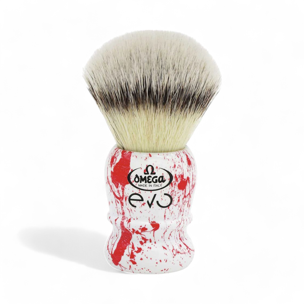 Der Omega Evo 2.0 Synthetic Thorn Rasierpinsel kombiniert traditionelles Handwerk mit moderner Technologie. Mit seinem einzigartigen Design, bei dem jeder Griff durch rote Spritzer individuell gestaltet ist, erhältst du ein unverwechselbares Accessoire für dein Rasierset. Das synthetische 2.0-Büschel sorgt für sanfte und präzise Rasuren, trocknet schnell und ist pflegeleicht. Perfekt für den täglichen Gebrauch und ideal für alle, die Qualität und Design schätzen.