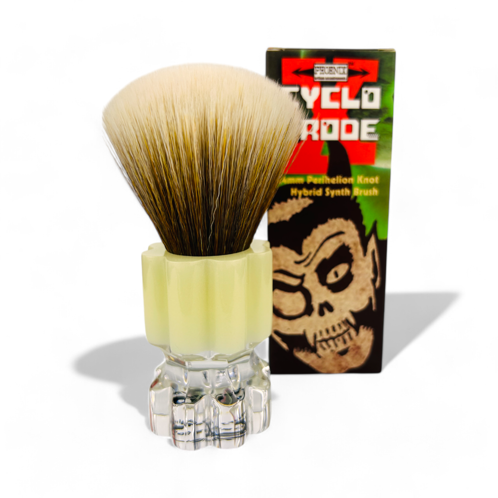 Der PAA Rasierpinsel Cyclotrode X ist mit dem 24 mm Perihelion Hybrid Synth Knot ausgestattet, einem der besten synthetischen Knoten auf dem Markt. Dieser Knoten kombiniert die besten Eigenschaften von Fan- und Bulb-Knoten, um ein unvergleichliches Rasurerlebnis zu bieten:
