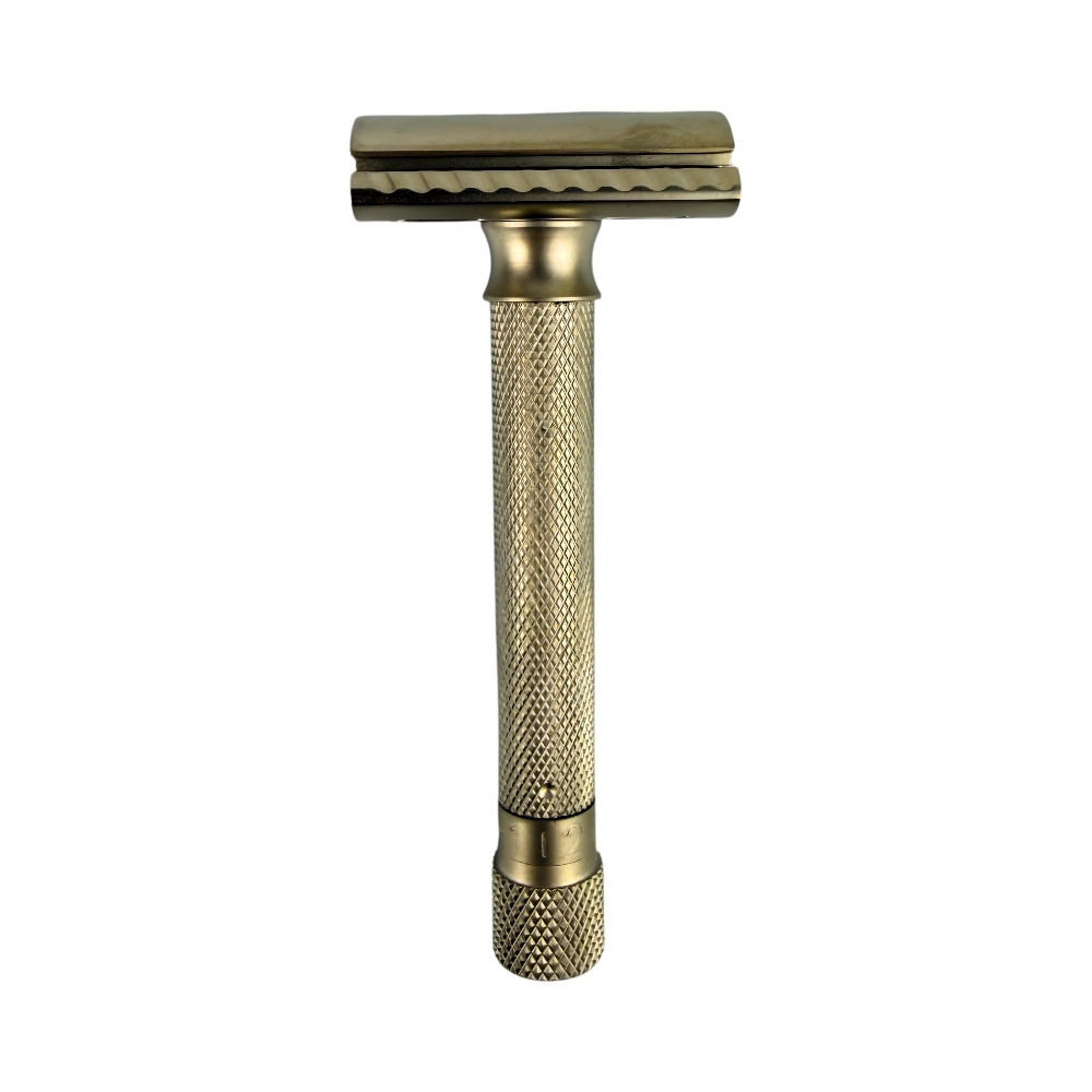 Der Rasierhobel VARSC überzeugt durch seine hochwertige Bauweise: Messingkern, matt verchromte Oberfläche und eine fein strukturierte Riffelung über den gesamten Griff für sicheren Halt. Mit seiner Länge von ca. 102 mm liegt er perfekt in der Hand und gleitet gleichmäßig über die Haut. Das maskuline Design und die handwerkliche Qualität machen ihn zu einem langlebigen Begleiter für die tägliche Rasur.