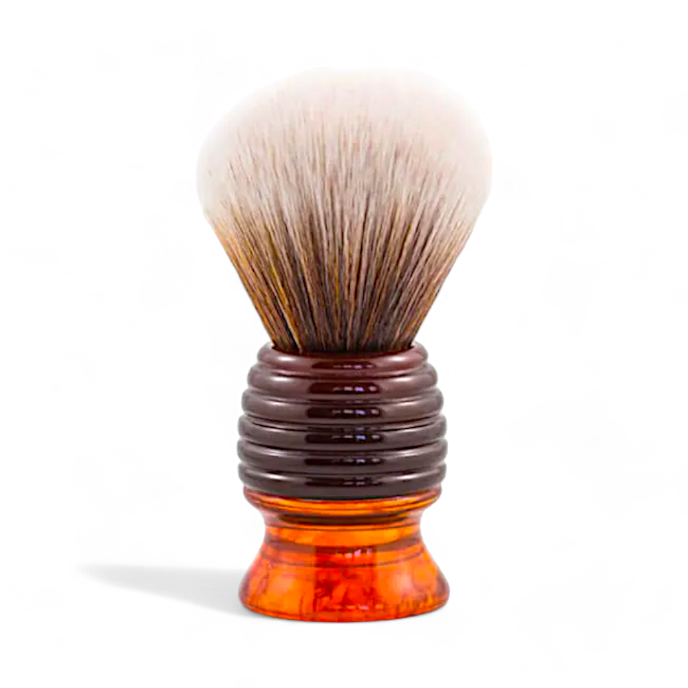 Der Griff des Rasierpinsels besteht aus Kunstharz, das für seine Langlebigkeit und Robustheit bekannt ist. Mit einem Gewicht von ca. 90g und einer Gesamthöhe von 104mm liegt der Pinsel perfekt in der Hand und ermöglicht eine komfortable Handhabung. Die Borsten sind aus synthetischem, veganem Material gefertigt, was den Pinsel zu einer tierfreundlichen und pflegeleichten Wahl macht.