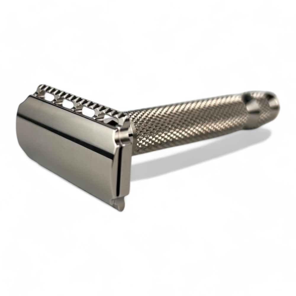 Dieser Rasierhobel ist aus 316L Edelstahl in Marine-Qualität gefertigt, was für Langlebigkeit und Robustheit sorgt. Die präzise CNC-gefräste Verarbeitung garantiert eine perfekte Passform und optimale Leistung. Der Griff in Ufo-Design bietet eine ausgezeichnete Handhabung und Kontrolle während der Rasur.