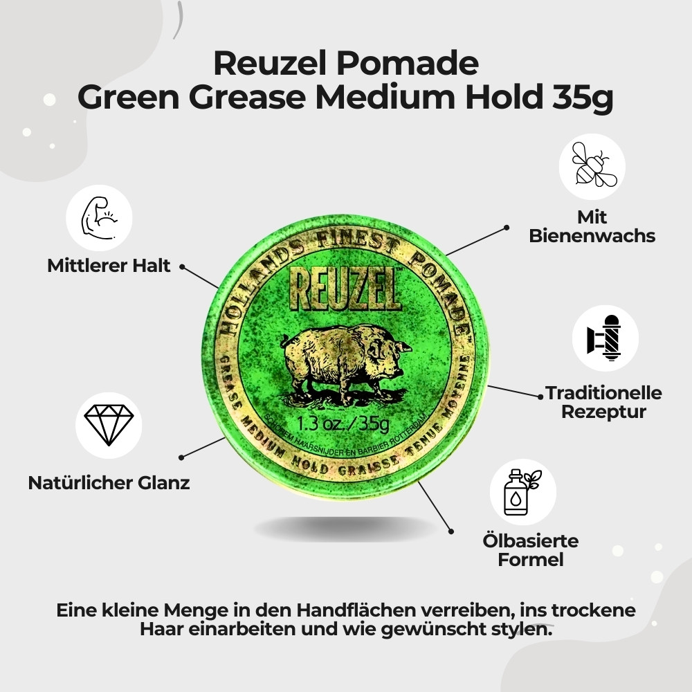 - 1x Reuzel Pomade Green Grease Medium Hold 35g, Bienenwachsbasiert