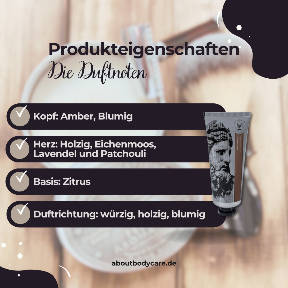 Schon beim Öffnen des Tiegels entfaltet sich eine intensive, fast geheimnisvolle Duftkomposition: Amber und florale Kopfnoten begrüßen dich weich und rund. In der Herznote tauchen warme Hölzer, erdiges Patchouli, Lavendel und ein Hauch von Eichenmoos auf – ein Duftbild, das an einen edlen Herrensalon erinnert.
