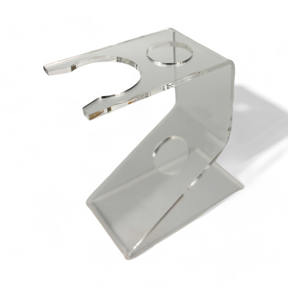 Dieser funktionale und kompakte Rasierhobel und Rasierpinselständer Größe L aus hochwertigem Acryl kann unterschiedlichste Rasierhobel und Rasierpinselgrößen aufnehmen. So sind Rasierpinsel von 24-30mm möglich.