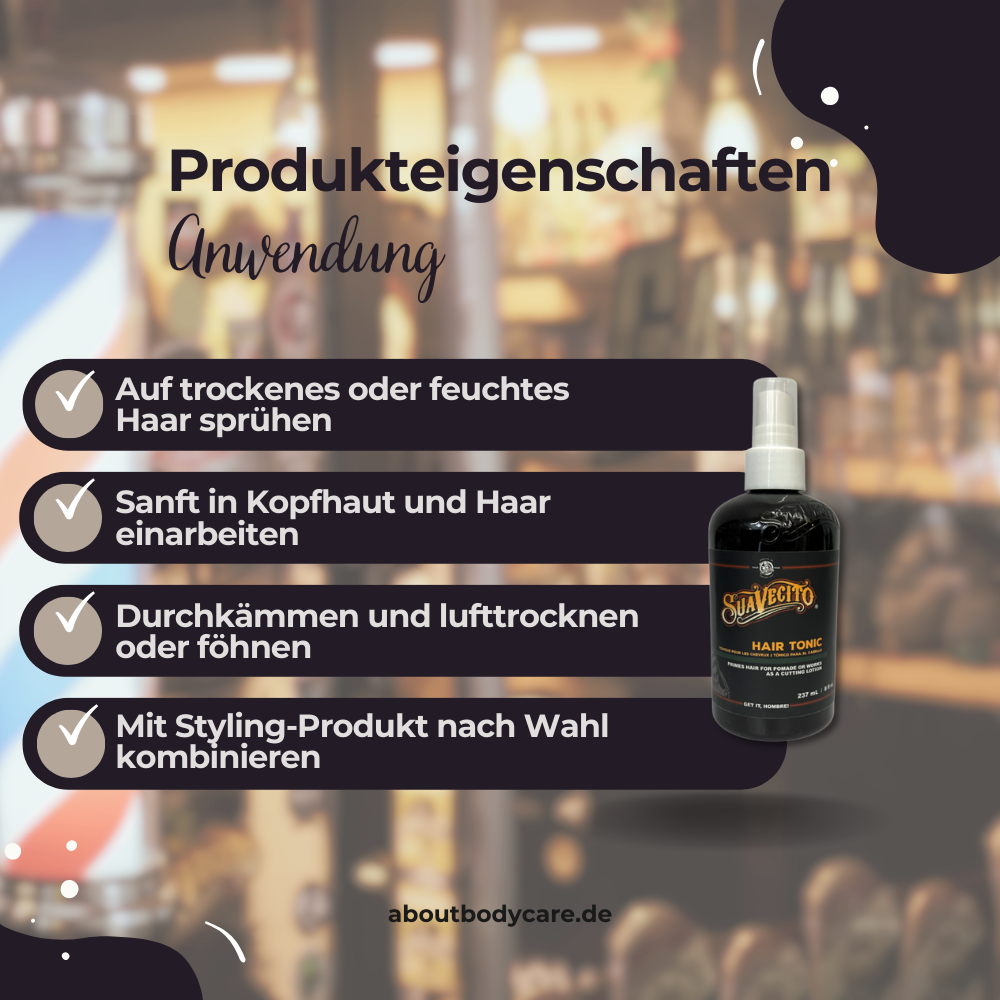 „Anwendung des Suavecito Hair Tonics“