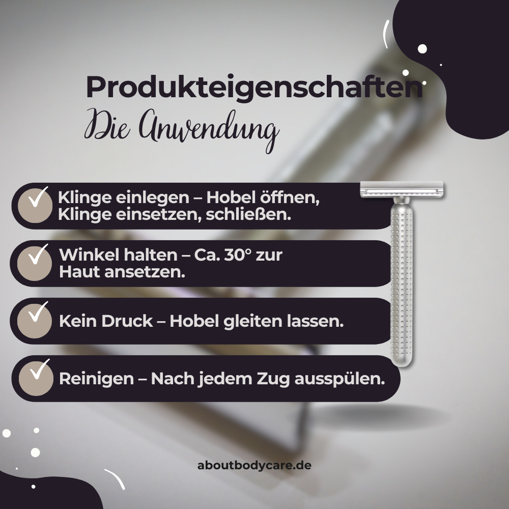 Tipp: Je nach Rasierklinge kannst du das Rasurgefühl variieren – von sanft bis spürbar direkt.