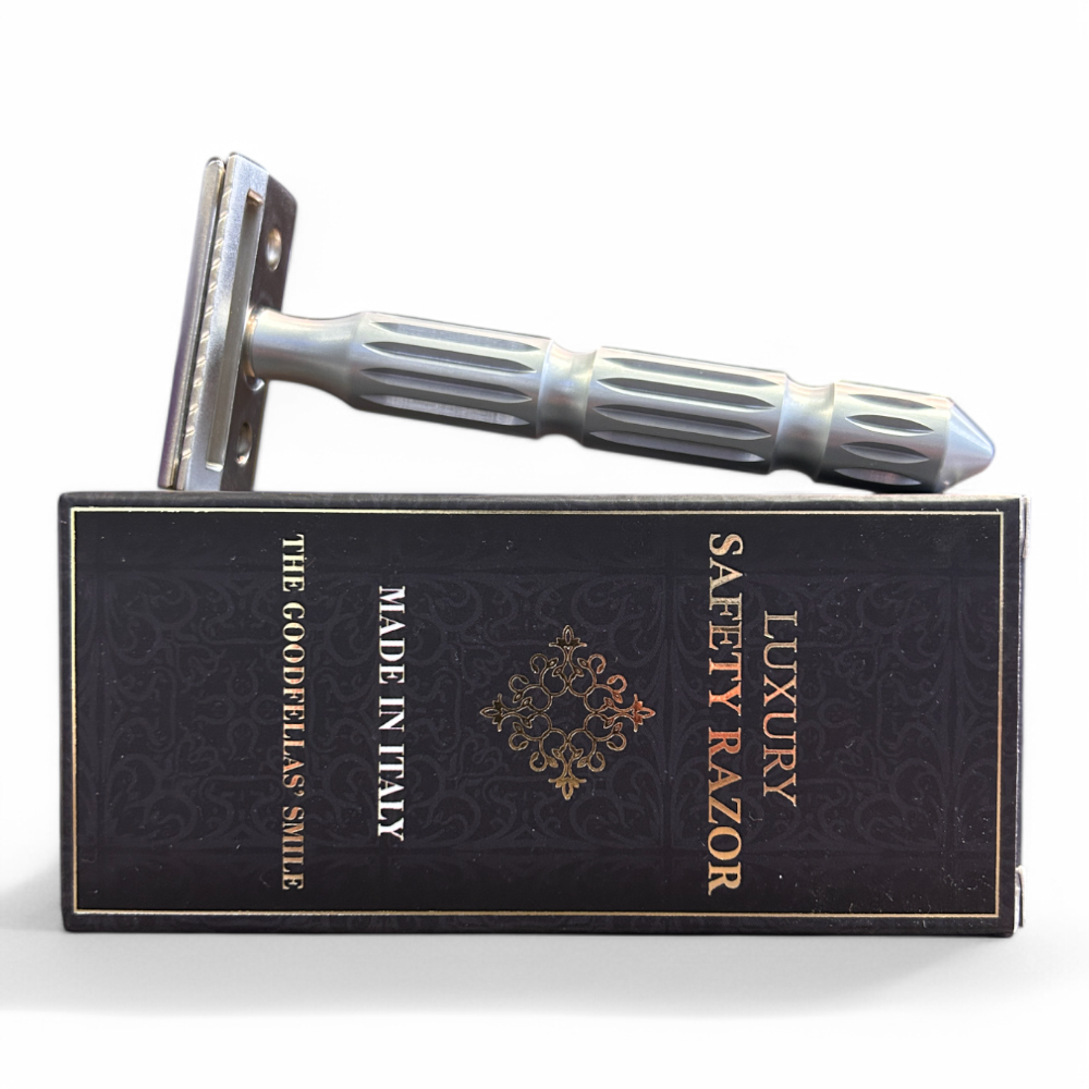 Der Rasierhobel Gladio von The Goodfellas’ Smile ist dein perfekter Begleiter für eine gründliche und stilvolle Rasur. Entwickelt mit italienischer Präzision und Leidenschaft, vereint dieser Hobel Ästhetik, Funktionalität und erstklassige Verarbeitung. Die hochwertige, satinierte Zamak-Kopfplatte sorgt für eine exzellente Balance zwischen Gründlichkeit und Komfort, während der elegante Aluminiumgriff sicheren Halt garantiert. Egal, ob du dich täglich oder nur gelegentlich rasierst – dieser Hobel gleitet mühelos über die Haut und liefert stets ein glattes Ergebnis. Für Liebhaber der klassischen Nassrasur, die Wert auf Qualität und Langlebigkeit legen.
