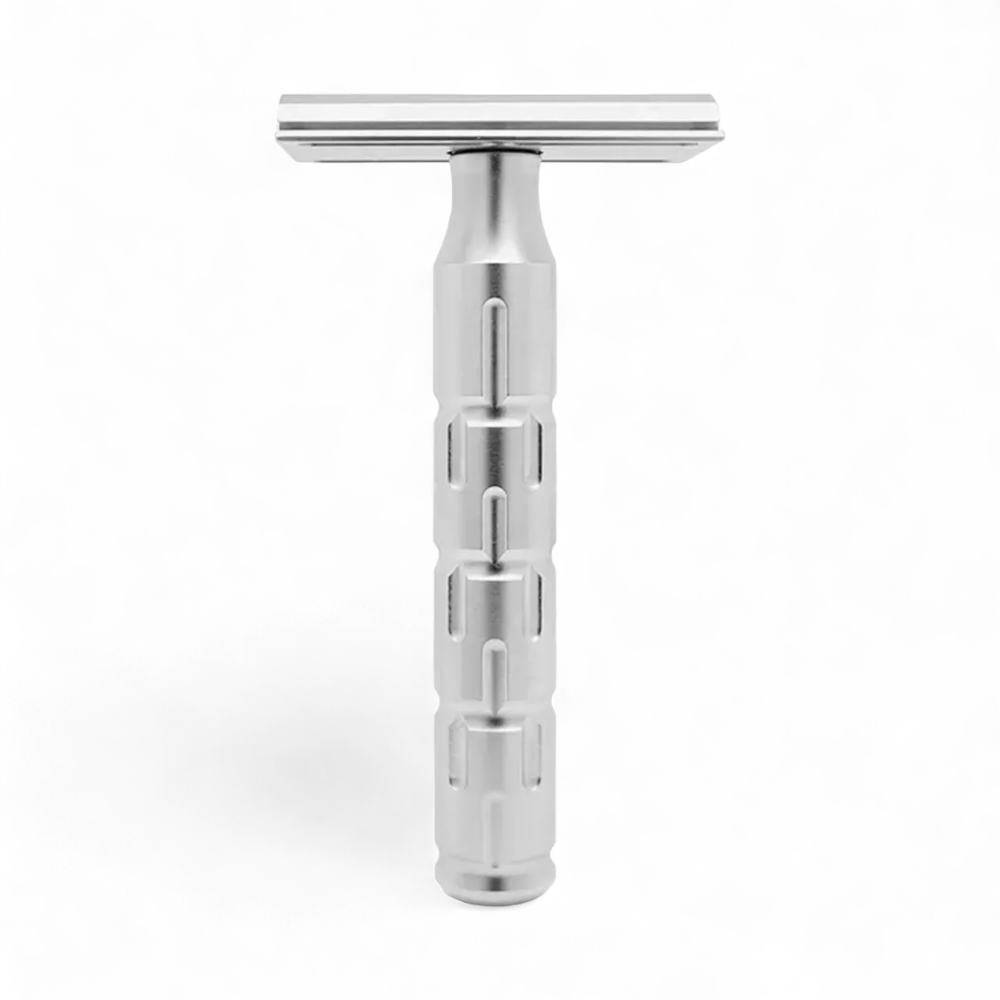 Der Edelstahl sorgt für ein robustes und dennoch elegantes Erscheinungsbild. Die klare Linienführung und die präzise Verarbeitung unterstreichen die hohe Qualität des Produkts und machen es zu einem echten Hingucker in deinem Badezimmer. Der Rasierhobel wird so zum stilvollen Begleiter in deiner täglichen Rasurroutine.
