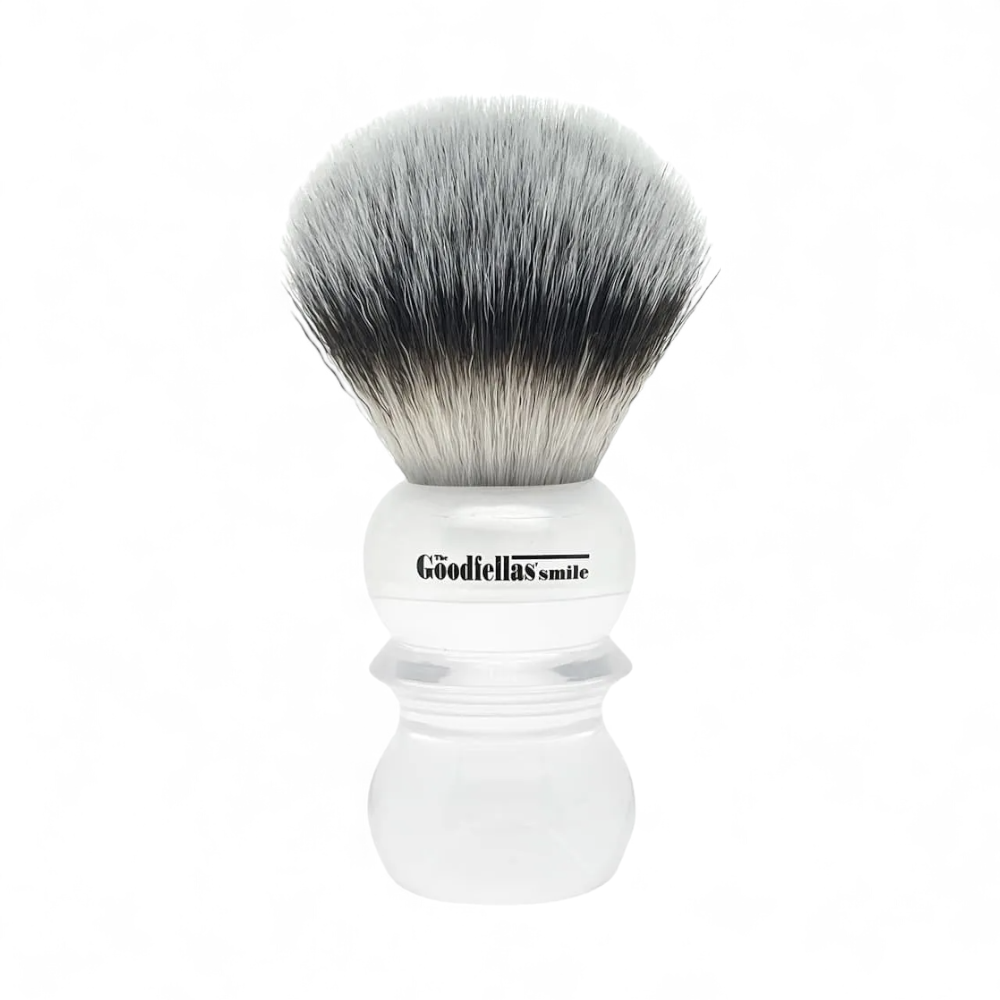 Der Bad Boy Rasierpinsel von The Goodfellas‘ Smile bringt Frische und Innovation in dein Rasurritual. Dieser Pinsel ist mit einem 24 mm großen Knoten aus synthetischem PBT-Technopolymer ausgestattet, das für seine überlegene Leistung und Langlebigkeit bekannt ist. Die Kombination aus erstklassigen Materialien und durchdachtem Design macht den Bad Boy zu einem unverzichtbaren Werkzeug für jede Rasur.