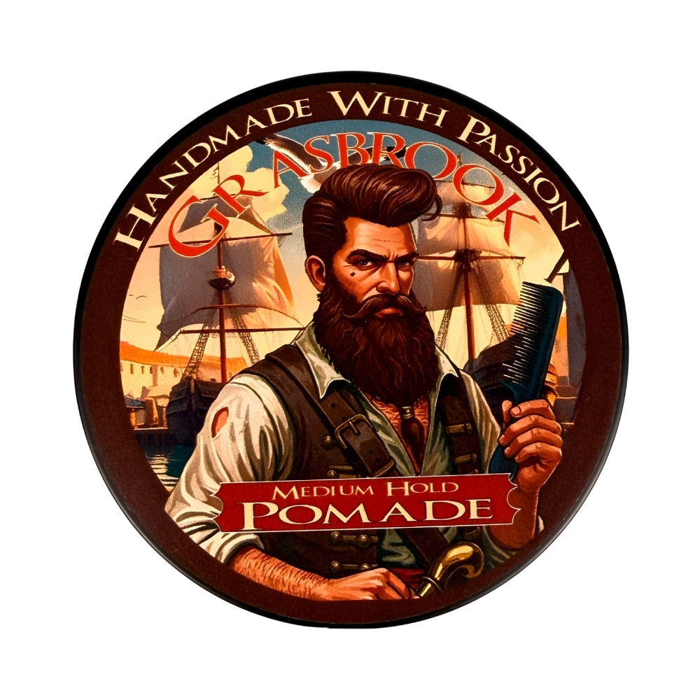 Hinter der Pomade Grasbrook stehen Sven Maasch und Carsten Sommer, zwei Pomaden-Enthusiasten, die ihre Erfahrung und Leidenschaft in dieses Produkt einfließen lassen. Das Design mit dem Porträt von Klaus Störtebeker und dem Kompass greift den historischen Ursprung auf und macht die Dose zu einem echten Blickfang im Badezimmer.